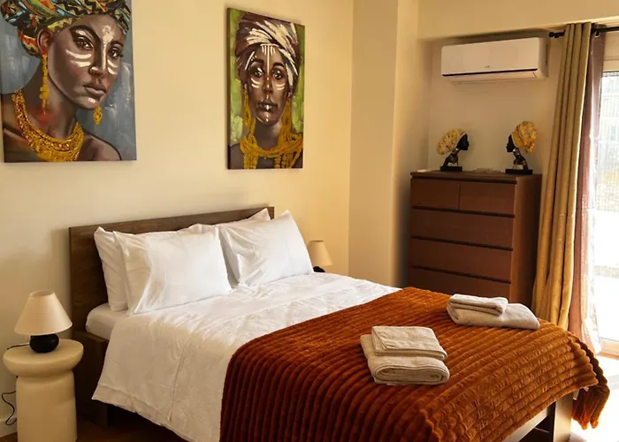Den 40 m² stora lägenheten ligger 3 km från Mycenaean cemetery of Voudeni. Gästerna kan besöka Agiou Nikolaou cirka 7 minuters promenad bort. Sankt Andreas kyrka ligger mindre än 1 km bort.